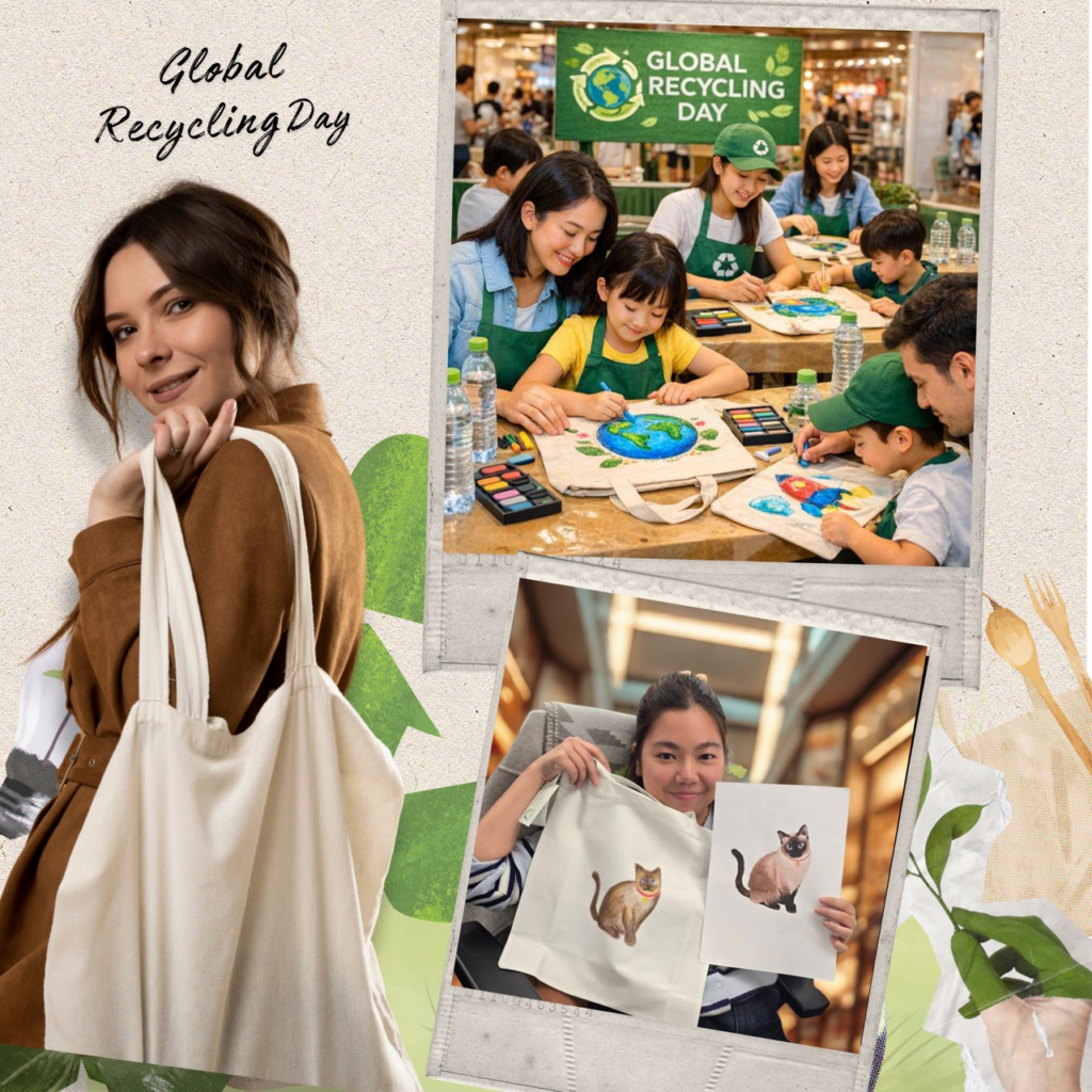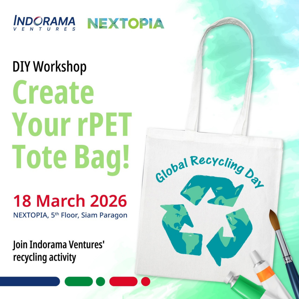 ภายในงาน Global Recycling Day ผู้เข้าร่วมจะได้ร่วมกิจกรรมสร้างสรรค์ ที่เชื่อมโยงแนวคิด ความยั่งยืนเข้ากับไลฟ์สไตล์ ผ่านกิจกรรม DIY ระบายสีกระเป๋าผ้ารีไซเคิลจากเส้นใย PET โดยความร่วมมือของ อินโดรามา เวนเจอร์ส และ oGGA idea เปิดโอกาสให้ผู้เข้าร่วมได้เรียนรู้ การคัดแยกขยะ อย่างถูกวิธี พร้อมออกแบบกระเป๋าผ้าในสไตล์ของตนเองและนำกลับบ้านเป็นของที่ระลึกสุดพิเศษ ผู้สนใจสามารถเข้าร่วม กิจกรรมได้ง่าย ๆ เพียงนำ ขวดน้ำดื่ม PET ใช้แล้วจำนวน 3 ขวด มาแลกสิทธิ์เข้าร่วมกิจกรรมในวันที่ 18 มีนาคม 2569 ณ NEXTOPIA ชั้น 5 สยามพารากอน และพิเศษสำหรับ 5 ท่านแรกที่นำขวด PET ใช้แล้วครบ 20 ขวด รับ กระเป๋าผ้าพกพาแบบพับได้ฟรี 1 ใบ